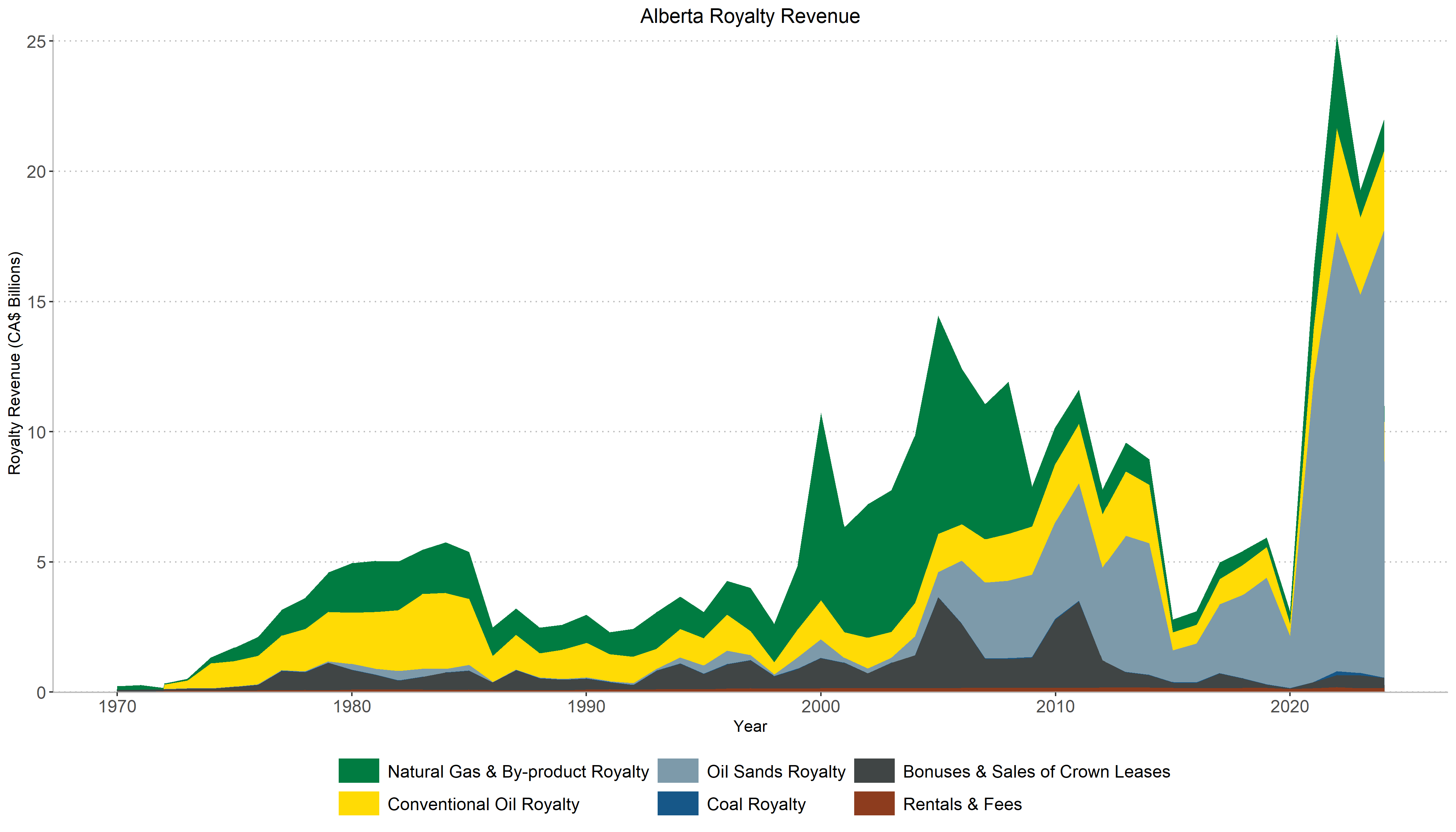 Context: notice how much more important natural gas royalties used to be in Alberta!