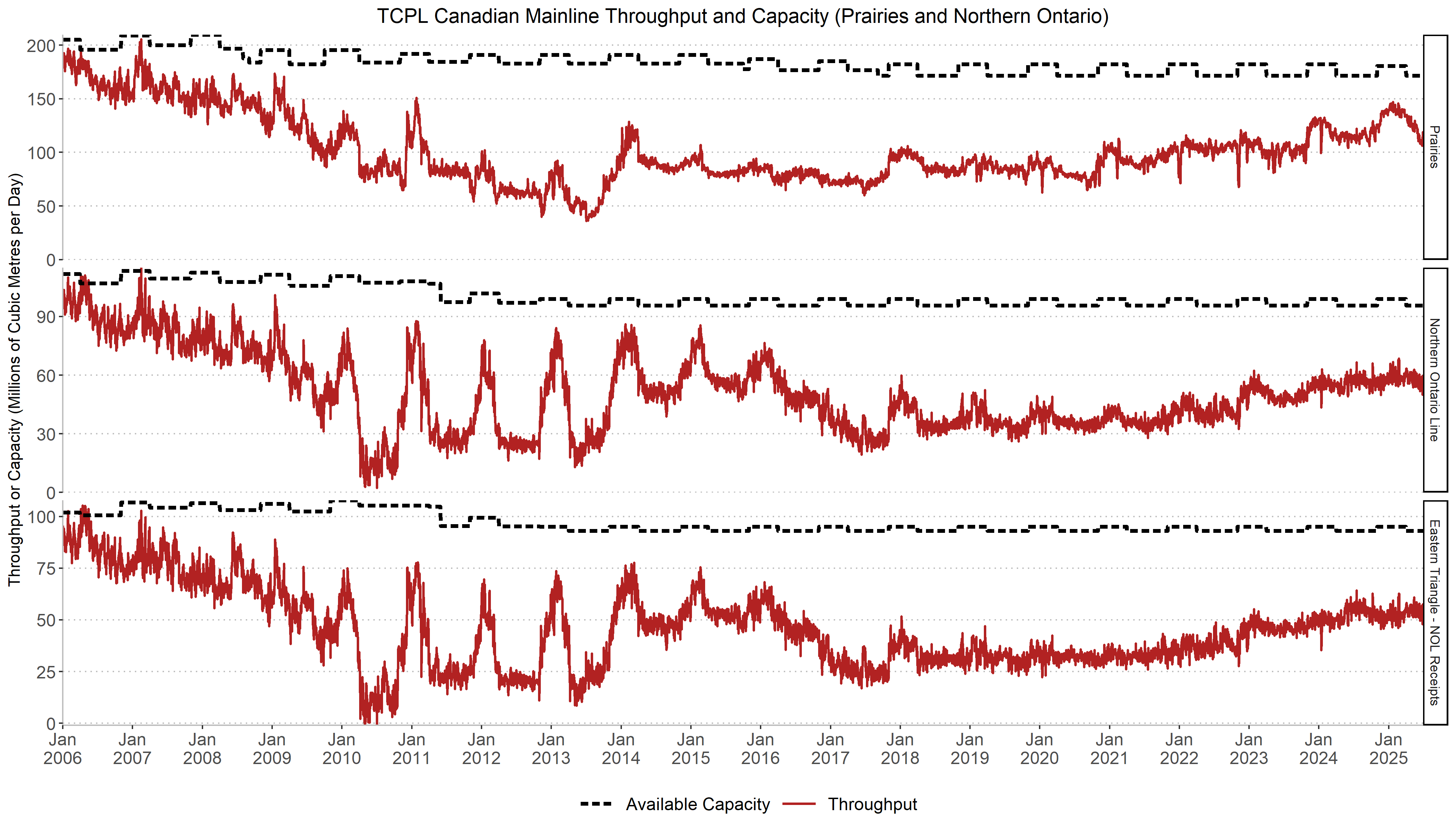 - a graph of throughput and capacity on the TC Energy Canadian Mainline;