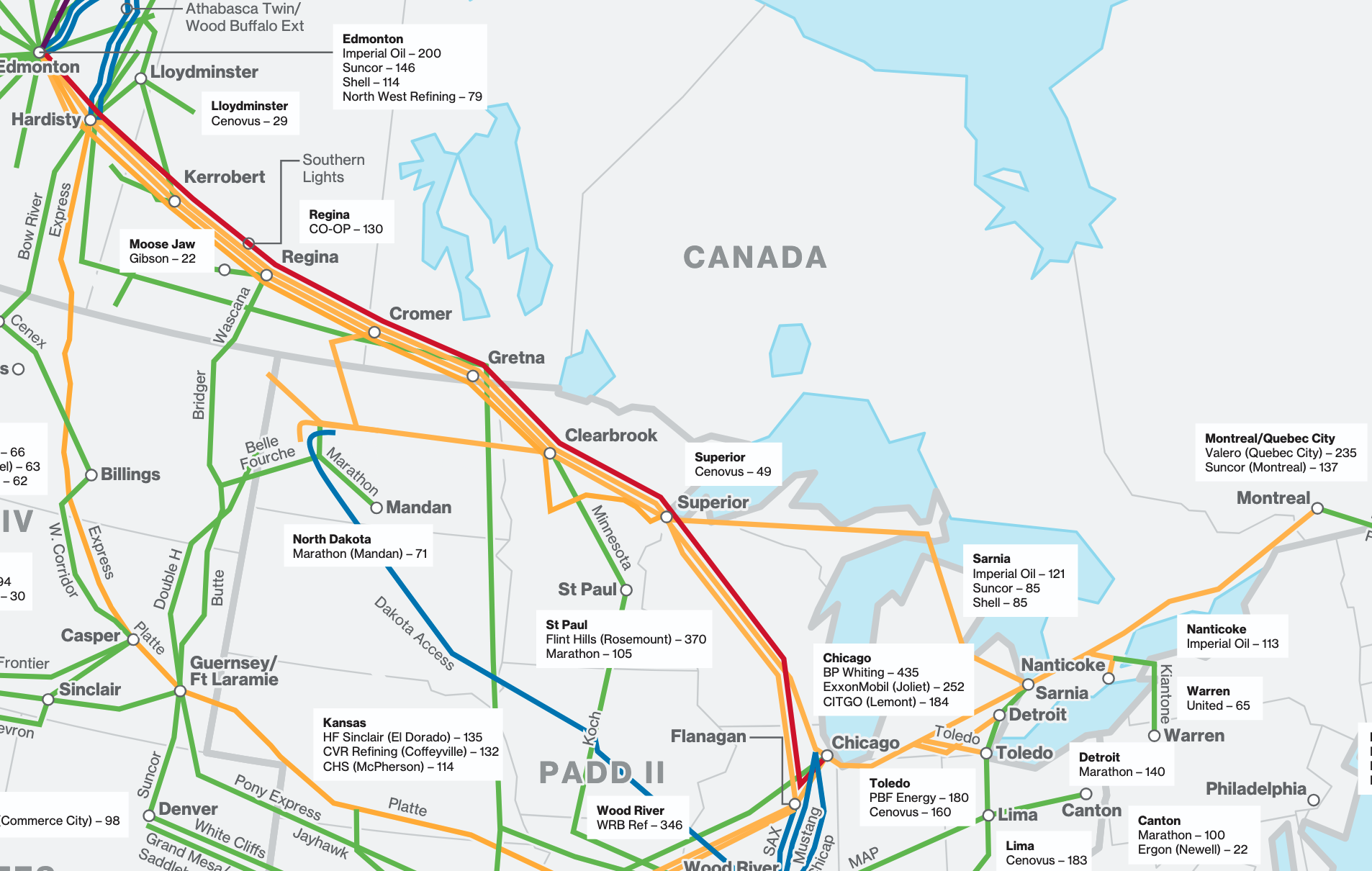 The Enbridge Mainline moves more crude oil than all other systems combined. It is also unique in that it allows Western Canadian crude to move to Ontario via the United States.